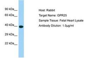 Synthetic peptide from C-Terminus of human GPR25 (O00155, NP_005289). Percent identity by BLAST analysis: Human, Chimpanzee, Gorilla, Orangutan, Monkey, Mouse, Rat, Panda (100%), Galago, Guinea pig (92%), Rabbit (85%).