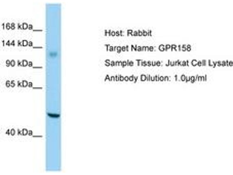 Synthetic peptide located between aa1120-1169 of human GPR158 (NP_065803). Percent identity by BLAST analysis: Human, Chimpanzee, Gibbon (100%), Gorilla, Orangutan, Monkey, Galago, Horse (92%), Marmoset (85%).
