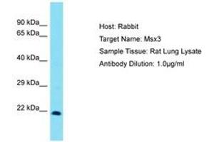 Synthetic peptide from C-Terminus of rat Msx3 (G3V8C7, NP_446164). Percent identity by BLAST analysis: Rat (100%).