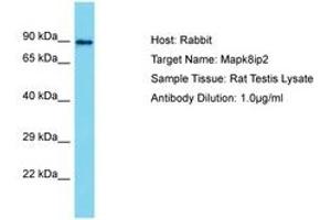 Synthetic peptide located between aa307-356 of rat Mapk8ip2 (G3V9M2). Percent identity by BLAST analysis: Rat (100%).