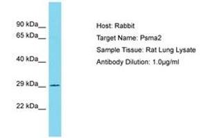Synthetic peptide located between aa122-171 of rat Psma2 (P17220, NP_058975). Percent identity by BLAST analysis: Human, Chimpanzee, Mouse, Rat, Sheep, Bovine, Rabbit, Horse, Pig, Guinea pig, Chicken (100%).