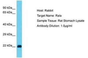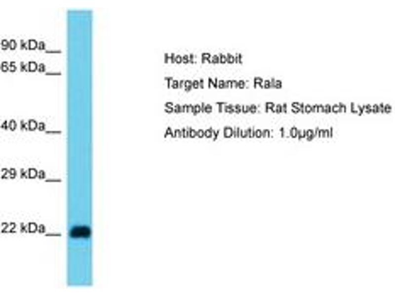Synthetic peptide from N-Terminus of rat Rala (P63322, NP_112355). Percent identity by BLAST analysis: Human, Chimpanzee, Mouse, Rat, Bovine, Rabbit, Horse, Pig, Chicken (100%).