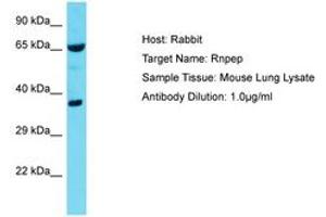 Synthetic peptide located between aa329-378 of mouse Rnpep (E9PYF1, NP_001153096). Percent identity by BLAST analysis: Mouse (100%).