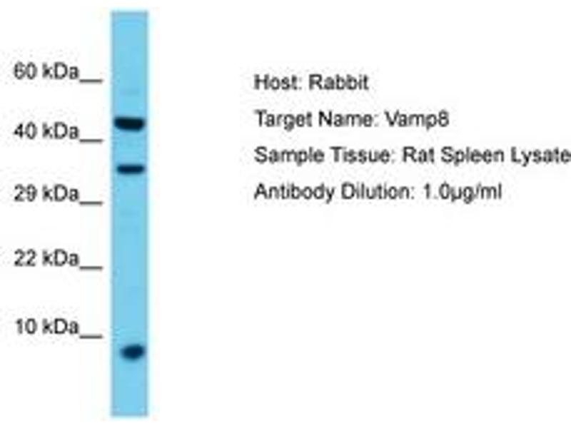 Synthetic peptide located between aa40-89 of rat Vamp8 (Q9WUF4, NP_114015). Percent identity by BLAST analysis: Rat (100%).