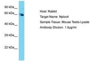 Synthetic peptide located between aa96-145 of mouse Nploc4 (P60670, NP_001181952). Percent identity by BLAST analysis: Mouse (100%).