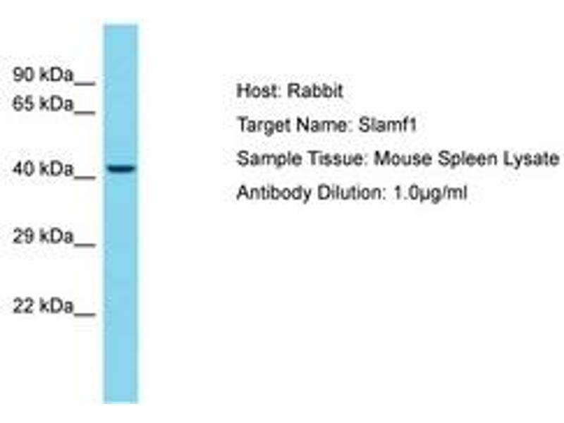 Synthetic peptide located between aa141-190 of mouse Slamf1 (Q9QUM4, NP_038758). Percent identity by BLAST analysis: Mouse (100%).