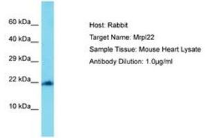 Synthetic peptide located between aa108-157 of mouse Mrpl22 (Q8BU88, NP_778166). Percent identity by BLAST analysis: Mouse, Rat (100%).