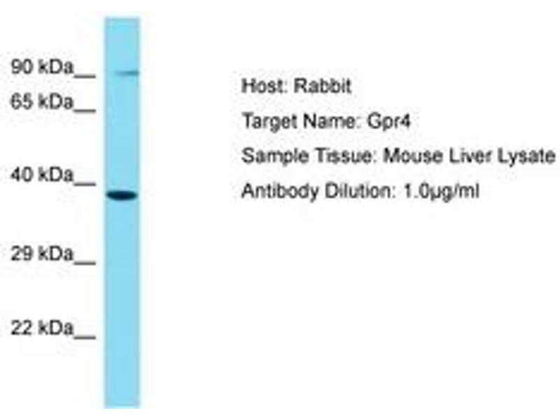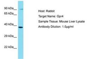 Synthetic peptide located between aa201-250 of mouse Gpr4 (Q8BUD0, NP_783599). Percent identity by BLAST analysis: Mouse, Rat (100%).