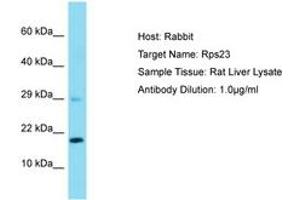 Synthetic peptide located between aa15-64 of rat Rps23 (P62268, NP_511172). Percent identity by BLAST analysis: Human, Chimpanzee, Mouse, Rat, Bovine, Rabbit, Horse, Pig, Guinea pig, Chicken (100%).
