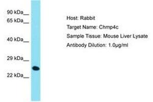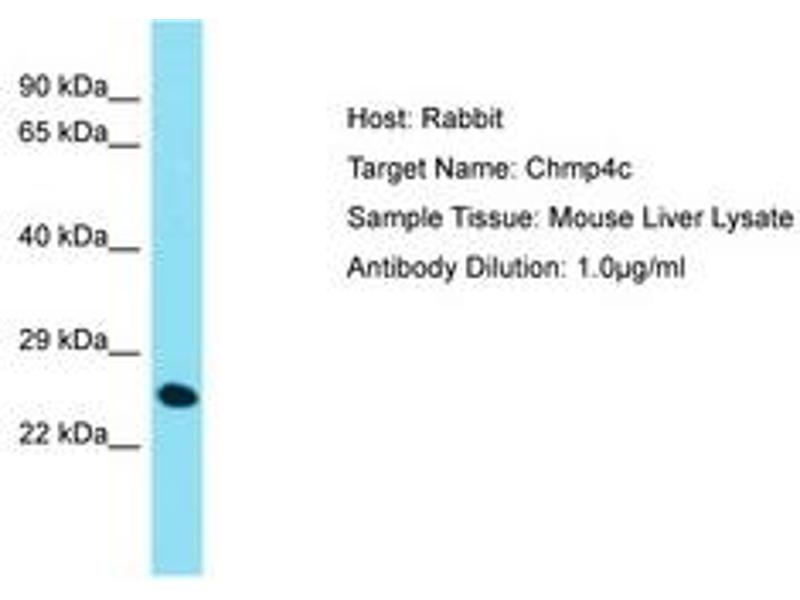 Synthetic peptide located between aa146-195 of mouse Chmp4c (Q9D7F7, NP_079795). Percent identity by BLAST analysis: Mouse (100%).