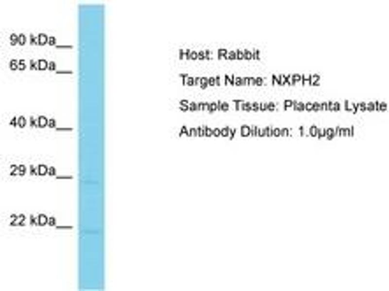 Synthetic peptide located between aa161-210 of human NXPH2 (O95156, NP_009157). Percent identity by BLAST analysis: Human, Chimpanzee, Bovine, Horse, Pig, Guinea pig (100%).