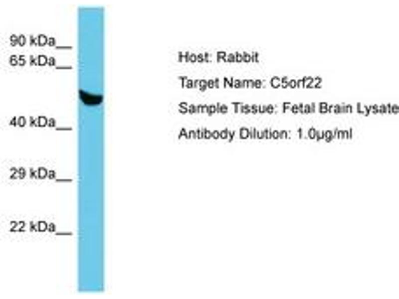 Synthetic peptide located between aa153-202 of human C5orf22 (Q49AR2, NP_060826). Percent identity by BLAST analysis: Human, Chimpanzee (100%).