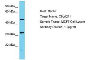 Synthetic peptide located between aa102-151 of human C6orf211 (Q9H993, NP_078849). Percent identity by BLAST analysis: Human (100%).
