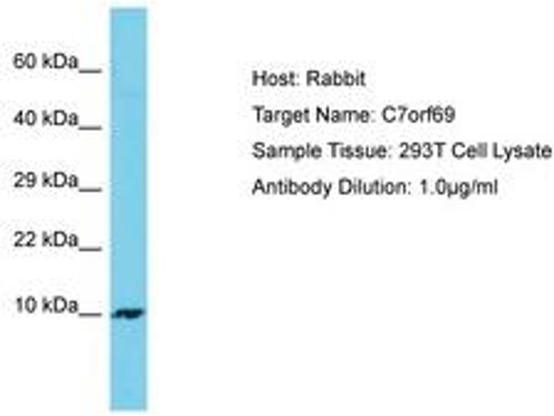 Synthetic peptide located between aa63-112 of human C7orf69 (Q9H7B7, NP_079307). Percent identity by BLAST analysis: Human (100%).