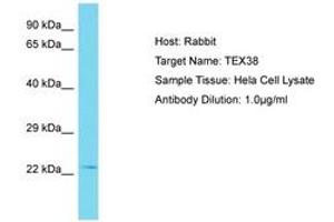 Synthetic peptide located between aa99-148 of human TEX38 (Q6PEX7, NP_001138946). Percent identity by BLAST analysis: Human (100%).