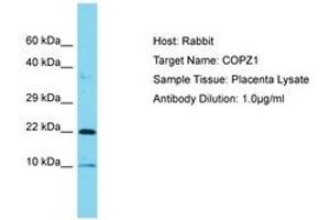 Synthetic peptide from C-Terminus of human COPZ1 (P61923, NP_057141). Percent identity by BLAST analysis: Human, Chimpanzee, Mouse, Rat, Goat, Bovine, Horse, Pig, Guinea pig (100%).