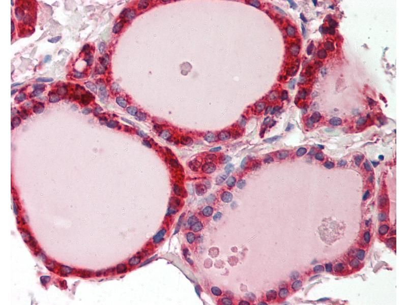Synthetic peptide located between aa213-262 of human CALR (P27797, NP_004334). Percent identity by BLAST analysis: Human, Chimpanzee, Gorilla, Gibbon, Monkey, Galago, Marmoset, Mouse, Rat, Hamster, Elephant, Panda, Dog, Bovine, Bat, Rabbit, Horse, Pig, Guinea pig (100%), Lizard, Stickleback, Drosophila (90%), Opossum, Platypus, Trout, Catfish, Salmon, Zebrafish (85%), Zebra finch, Chicken, Nematode (81%).