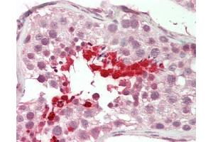 Synthetic peptide from N-Terminus of human BRDT (Q58F21, NP_001717). Percent identity by BLAST analysis: Human, Chimpanzee, Gibbon, Monkey, Marmoset, Elephant, Panda, Guinea pig (100%), Galago, Mouse, Dog, Rabbit, Opossum, Platypus (92%), Rat, Horse, Xenopus (85%).