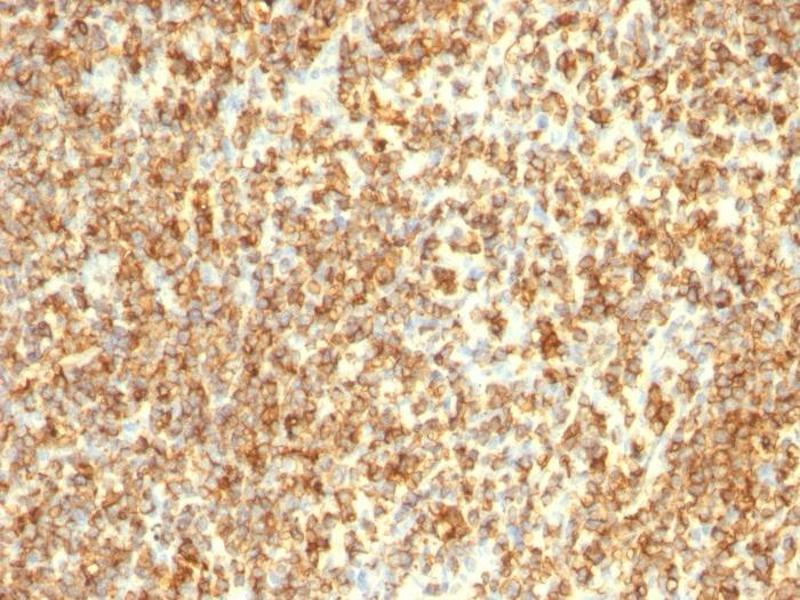 - Recognizes a protein of 30-33 kDa, which is identified as CD20. Its epitope is located in the cytoplasmic domain of CD20 and was, therefore, ascribed as CD20cy in the 5th Workshop. CD20 is a non-Ig differentiation antigen of B-cells and its expression is restricted to normal and neoplastic B-cells, being absent from all other leukocytes and tissues. CD20 is expressed by pre B-cells and persists during all stages of B-cell maturation but is lost upon terminal differentiation into plasma cells. This MAb can be used for immunophenotyping of leukemia and malignant cells, B lymphocyte detection in peripheral blood and B cell localization in tissues. It reacts with the majority of B-cells present in peripheral blood and lymphoid tissues and their derived lymphomas. In lymphoid tissue, germinal center blasts and B-immunoblasts are particularly reactive. It is a reliable antibody for ascribing a B-cell phenotype in known lymphoid tissues. Rarely, CD20-positive T-cell lymphomas have been reported. Reactivity has also been noted with Reed-Sternberg cells in cases of Hodgkin s disease, particularly of lymphocyte predominant type.