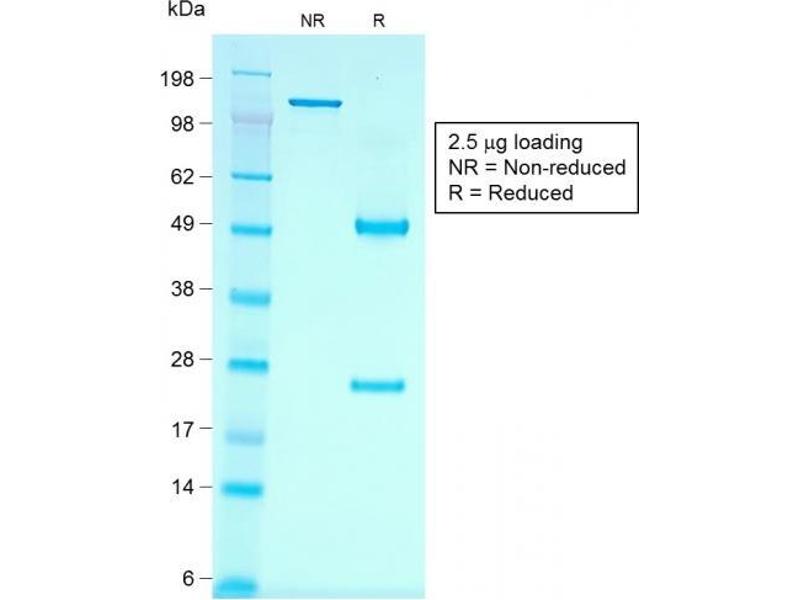 Known Application: Flow Cytometry (1-2 μg/million cells), Western Blot (1-2 μg/mL), Immunohistochemistry (Formalin-fixed) (1-2 μg/mL for 30 minutes at RT)(Staining of formalin-fixed tissues requires heating tissue sections in 10 mM Tris with 1 mM EDTA, pH 9.0, for 45 min at 95°C followed by cooling at RT for 20 minutes), Optimal dilution for a specific application should be determined.