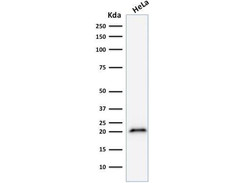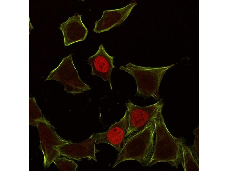 Positive Control: HeLa cells (IF). HeLa cell lysates (WB). Skin, colon or breast carcinoma (IHC).