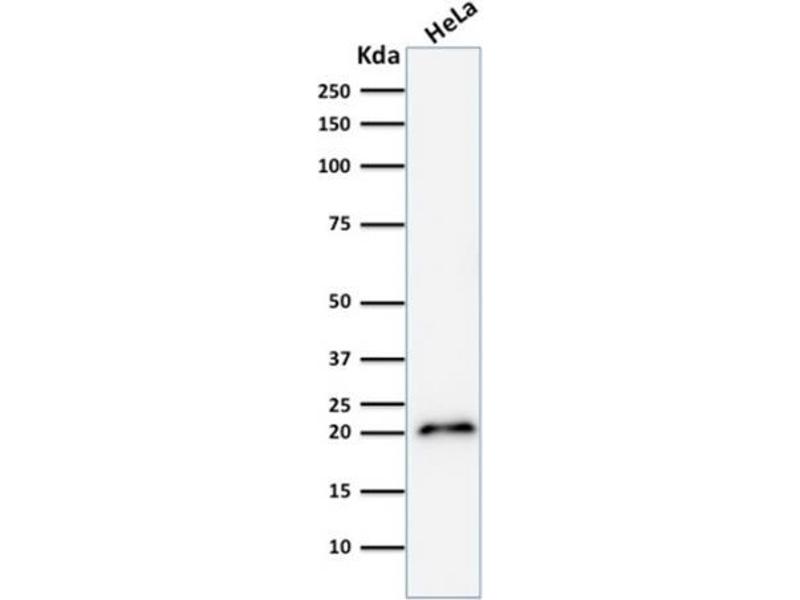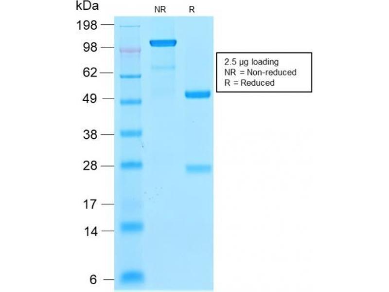 Known Application: Western Blot (1-2 μg/mL), Immunohistochemistry (Formalin-fixed) (1-2 μg/mL for 30 minutes at RT)(Staining of formalin-fixed tissues requires heating tissue sections in 10 mM Tris with 1 mM EDTA, pH 9.0, for 45 min at 95°C followed by cooling at RT for 20 minutes), Optimal dilution for a specific application should be determined.