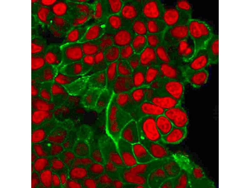 - Recognizes a protein of 185 kDa, which is identified as c-erbB-2/HER-2/neu. Its epitope is localized in the extracellular domain. C-erbB-2/HER-2 is a member of the EGFR family. This MAb is specific and shows minimal cross-reaction with other members of the EGFR-family. Receptors of this family are located on the plasma membrane and consist of an extracellular ligand-binding domain that is connected to a large intracellular domain by a single transmembrane sequence. c-erbB-2/HER-2 protein is over-expressed in a variety of carcinomas especially those of breast and ovary.