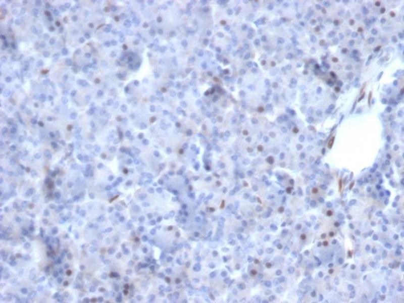 Positive Control: PDGF-treated NIH/3T3 cells. HeLa cell lysates. Human pancreas or cervical carcinoma.