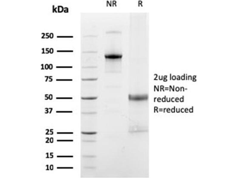 Known Application: Immunohistochemistry (Formalin-fixed) (2-4 μg/mL for 30 minutes at RT)(Staining of formalin-fixed tissues is enhanced by boiling tissue sections in 10 mM Citrate Buffer, pH 6.0, for 10-20 min followed by cooling at RT for 20 minutes)Optimal dilution for a specific application should be determined.