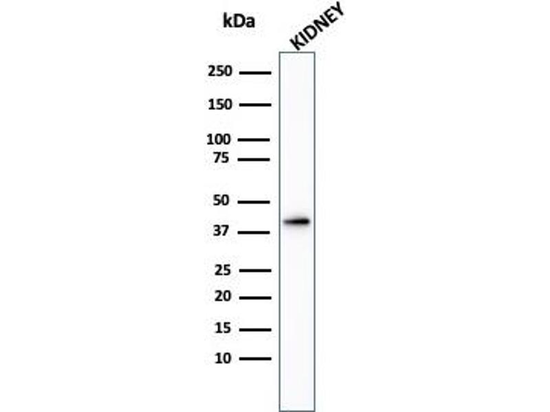 Known Application: Immunohistochemistry (Formalin-fixed) (1:50-1:100 for 30-60 minutes at RT)(Staining of formalin-fixed tissues requires boiling tissue sections in 1 mM EDTA, pH 7.5-8.5, for 10-20 min followed by cooling at RT for 20 minutes)Optimal dilution for a specific application should be determined.