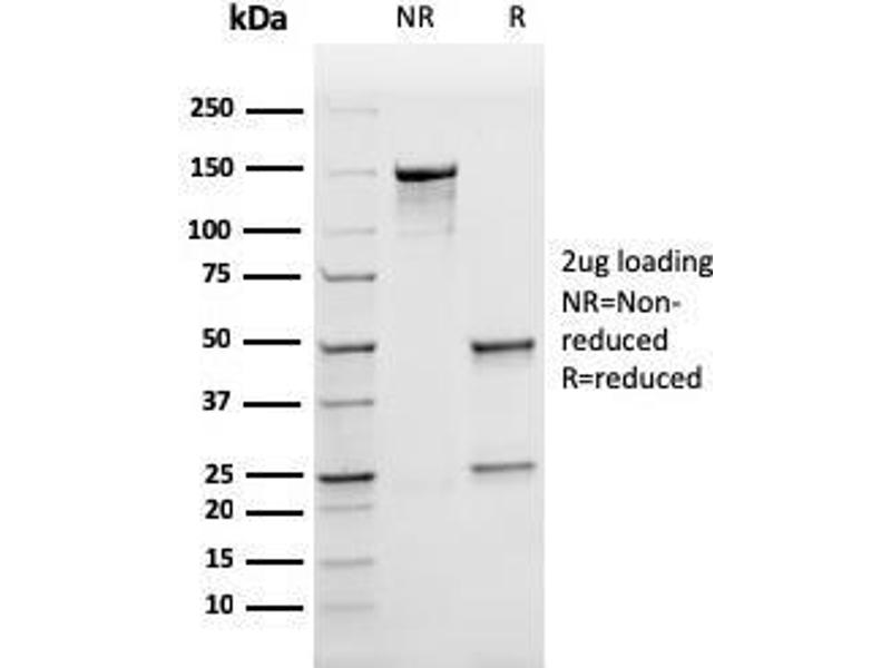 Known Application: Immunohistochemistry (Formalin-fixed) (0.1-0.2 μg/mL for 30 min at RT),(Staining of formalin-fixed tissues requires boiling tissue sections in 10 mM Citrate Buffer, pH 6.0, for 10-20 min followed by cooling at RT for 20 minutes),Optimal dilution for a specific application should be determined.