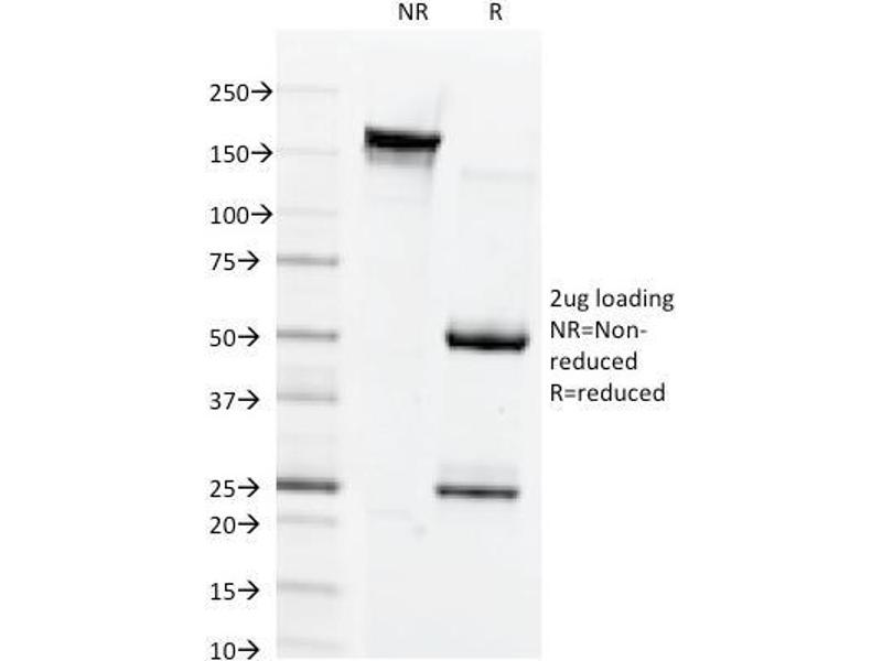 Known Application: Immunofluorescence (1-2 μg/mL), Flow Cytometry (0.5-1 μg/million cells), Western Blot (0.5-1 μg/mL), Immunohistochemistry (Frozen) (0.5-1.0 μg/mL for 30 minutes at RT)Optimal dilution for a specific application should be determined.