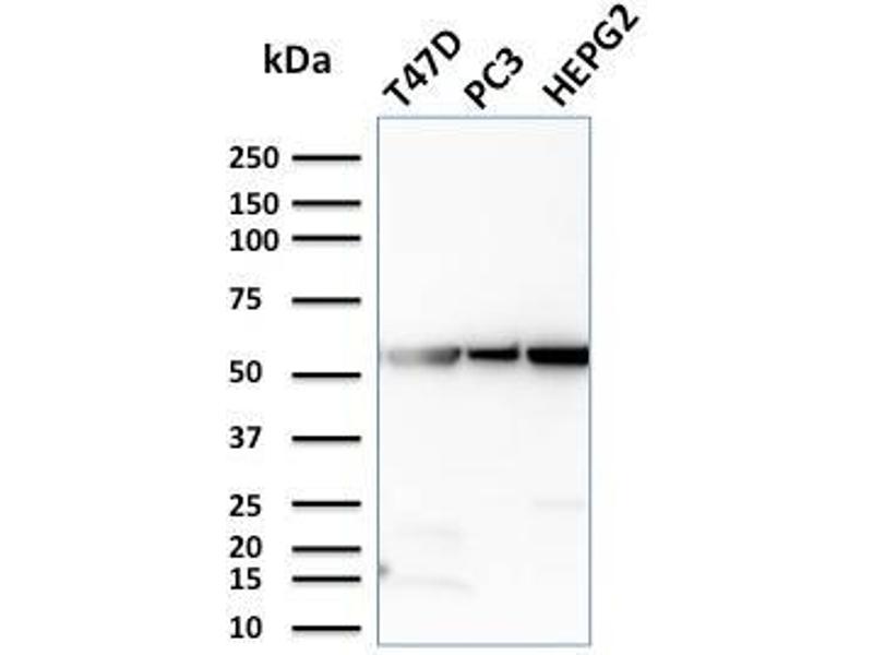 Positive Control: T47D, PC3, MCF-7, HepG2 and A549 cells. Brain, pancreas or thyroid carcinoma.
