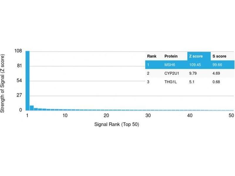 - Recombinant fragment of human MSH6 protein (around aa 374-540) (exact sequence is proprietary)