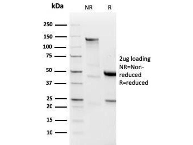Known Application: Immunohistochemistry (Formalin-fixed) (0.1-0.2 μg/mL for 30 min at RT)(Staining of formalin-fixed tissues requires boiling tissue sections in 10 mM citrate buffer, pH 6.0, for 10-20 min followed by cooling at RT for 20 minutes)Optimal dilution for a specific application should be determined.