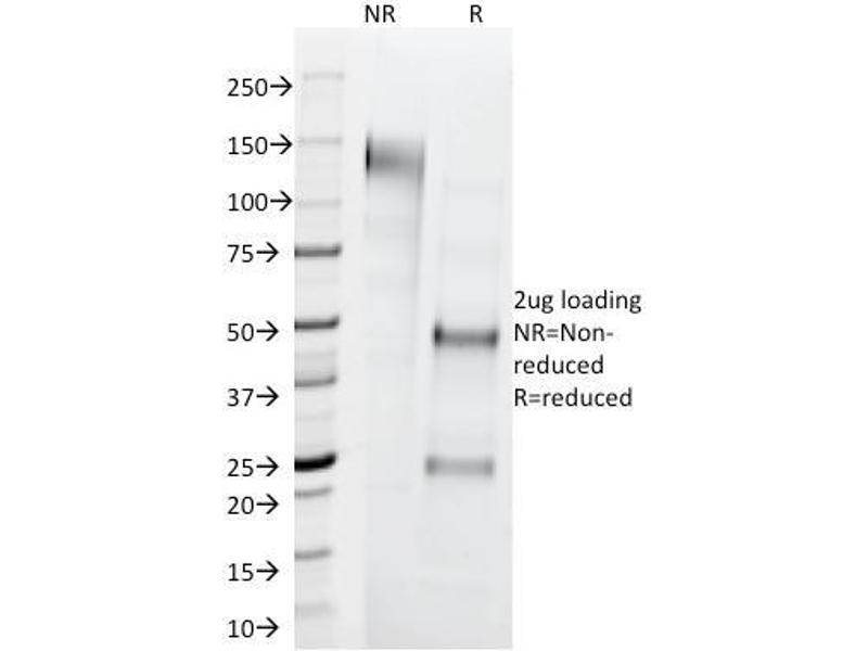 Known Application: Immunohistochemistry (Formalin-fixed) (0.1-0.2 μg/mL for 30 min at RT)(Staining of formalin-fixed tissues requires boiling tissue sections in 10 mM citrate buffer, pH 6.0, for 10-20 min followed by cooling at RT for 20 minutes)Optimal dilution for a specific application should be determined.