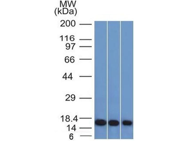 Known Application: ELISA (Use Ab at 2-4 μg/mL for coating) (Order Ab without BSA), Immunofluorescence (1-2 μg/mL), Western Blot (1-2 μg/mL), Immunohistochemistry (Formalin-fixed) (0.5-1 μg/mL for 30 min at RT)(Staining of formalin-fixed tissues requires boiling tissue sections in 10 mM Citrate Buffer, pH 6.0, for 10-20 min followed by cooling at RT for 20 minutes)Optimal dilution for a specific application should be determined.