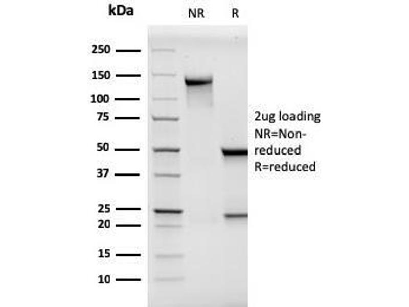 Known Application: Immunohistochemistry (Formalin-fixed) (0.5-1.0 μg/mL for 30 minutes at RT),(Staining of formalin-fixed tissues requires boiling tissue sections in 1 mM EDTA, pH 8.0, for 10-20 min followed by cooling at RT for 20 minutes),Optimal dilution for a specific application should be determined.