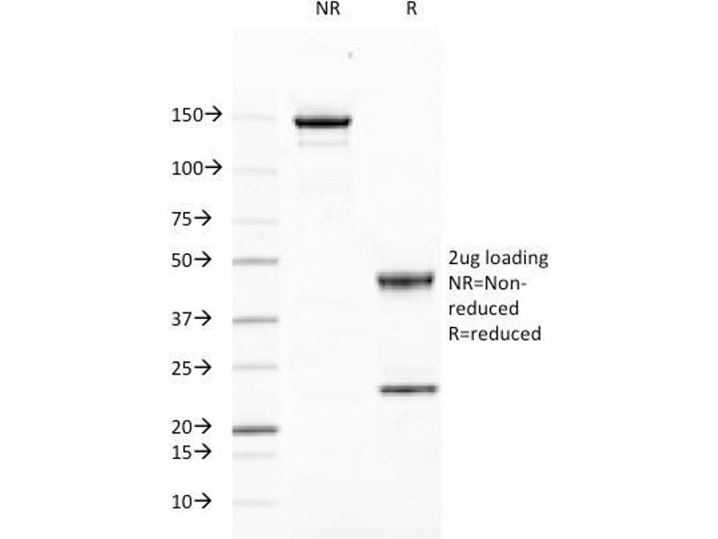 - Recognizes a protein of 52 kDa-58 kDa, identified as CD46 (also known as membrane cofactor protein, MCP). Its epitope is located on the four immunogenic short consensus repeat (SCR) domains at N-terminus of the protein. CD46 exists as many isoforms in a variety of tissues. It is strongly expressed on salivary gland ducts and kidney ducts, moderately on lymphocytes and endothelium, and weakly on interstitial tissues and muscle cells, but not on erythrocytes. CD46 functions as a C3b/C4b-binding glycoprotein that inhibits complement activation on host cells. It also serves as a measles virus receptor, an adherence factor for group Streptococcus pyogenes, and a cellular pilus receptor for pathogenic Neisseria.