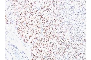 Known Application: Immunohistochemistry (Formalin-fixed) (1-2 μg/mL for 30 minutes at RT)(Staining of formalin-fixed tissues requires boiling tissue sections in 10 mM citrate buffer, pH 6.0, for 10-20 min followed by cooling at RT for 20 minutes)Optimal dilution for a specific application should be determined.