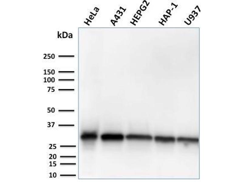 Positive Control: HepG2, A431, HeLa or MCF-7 cells. Human kidney tissues.