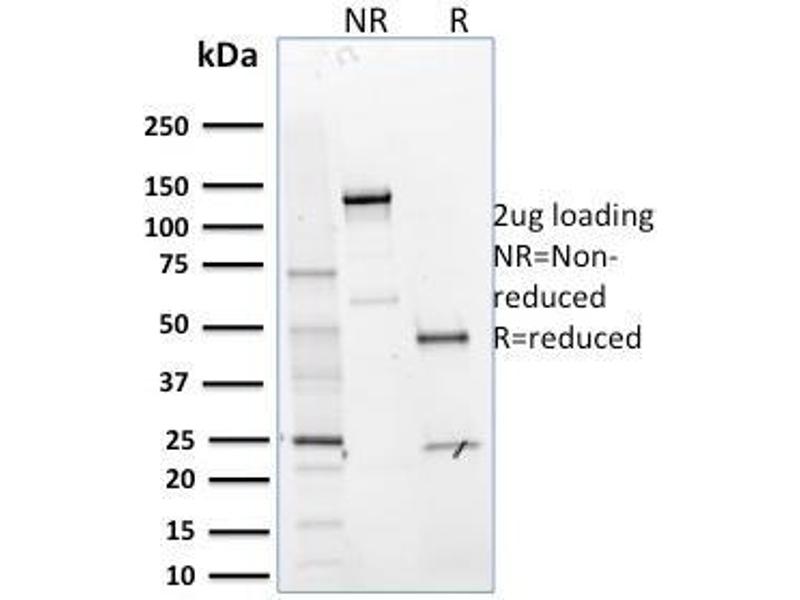 Known Application: Immunohistochemistry (Formalin-fixed) (0.5-1 μg/mL for 30 min at RT)(Staining of formalin-fixed tissues requires boiling tissue sections in 10 mM Citrate Buffer, pH 6.0, for 10-20 min followed by cooling at RT for 20 minutes)Optimal dilution for a specific application should be determined.