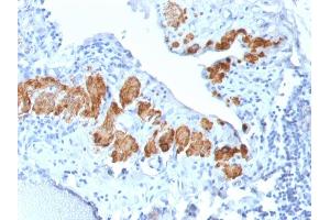 Known Application: Immunohistochemistry (Formalin-fixed) (0.5-1 μg/mL for 30 minutes at RT)(Staining of formalin-fixed tissues requires boiling tissue sections in 10 mM citrate buffer, pH 6.0, for 10-20 min followed by cooling at RT for 20 minutes)Optimal dilution for a specific application should be determined.