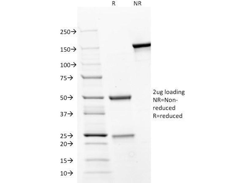 Known Application: Flow Cytometry (1-2 μg/million cells), Immunofluorescence (1-2 μg/mL), Western Blot (1-2.0 μg/mL), Immunohistochemistry (Formalin-fixed) (1-2 μg/mL for 30 minutes at RT)(Staining of formalin-fixed tissues requires boiling tissue sections in 10 mM Tris with 1 mM EDTA, pH 9.0, for 10-20 min followed by cooling at RT for 20 minutes)Optimal dilution for a specific application should be determined.