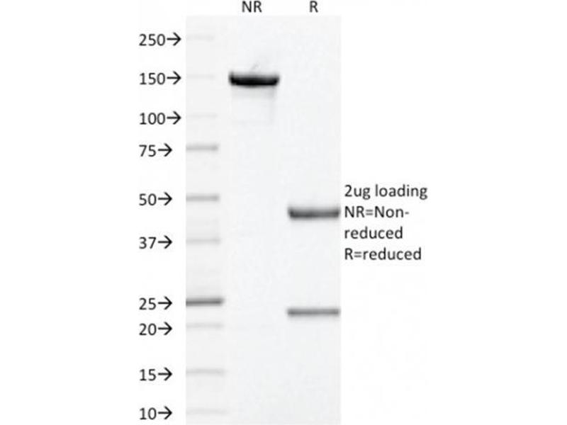Known Application: Western Blot (0.5-2 μg/mL),Immunohistochemistry (Formalin-fixed) (1-2 μg/mL for 30 minutes at RT)(Staining of formalin-fixed tissues requires boiling tissue sections in 10 mM citrate buffer, pH 6.0, for 10-20 min followed by cooling at RT for 20 minutes)Optimal dilution for a specific application should be determined.