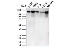 Positive Control: HAP1, K562, PC3, HePG2, NIH3T3 cells. Human testis.