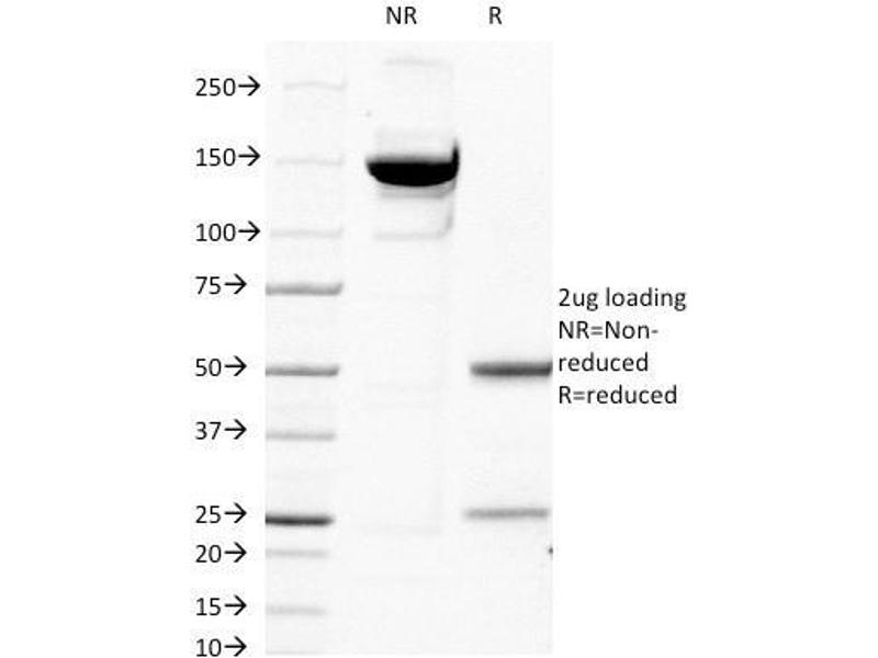 Known Application: Immunohistochemistry (Formalin-fixed) (0.5-1 μg/mL for 30 minutes at RT) (Staining of formalin-fixed tissues requires boiling tissue sections in 10 mM Citrate buffer, pH 6.0, for 10-20 min followed by cooling at RT for 20 minutes)Optimal dilution for a specific application should be determined.