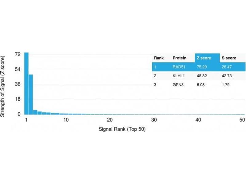 - Recombinant fragment of human RAD51 protein (around aa 1-134) (exact sequence is proprietary)