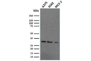 Positive Control: MCF-7, HeLa or HepG2 cells. Human tonsil (IHC).