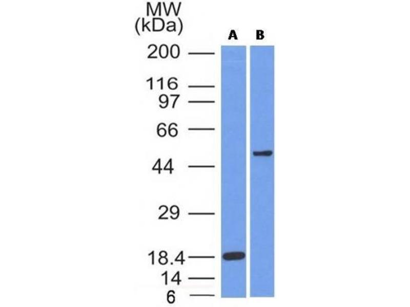 Known Application: Western Blot (0.5-1.0 μg/mL), Immunohistochemistry (Formalin-fixed) (0.5-1 μg/mL for 30 minutes at RT)(Staining of formalin-fixed tissues requires boiling tissue sections in 10 mM citrate buffer, pH 6.0, for 10-20 min followed by cooling at RT for 20 minutes)Optimal dilution for a specific application should be determined.